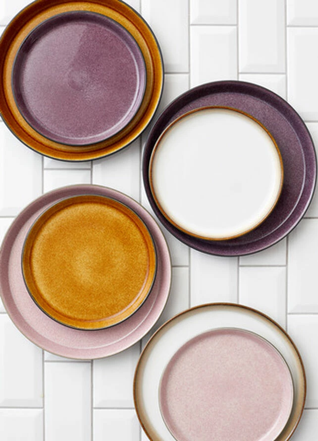 BITZ tallerken fremstillet i mat sort/blankt lilla stentøj. Dia. 21 cm. Gastro-tallerknernes blanke overflade stimulerer alle sanser med sit legende farvespil, og den større spiseflade giver plads til endnu mere kreativitet i anretningen.