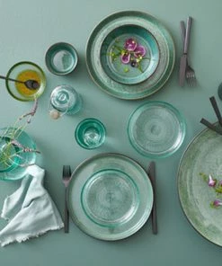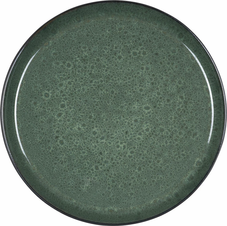 BITZ tallerken fremstillet i mat sort/blankt grønt stentøj. Dia. 27 cm. Gastro-tallerknernes blanke overflade stimulerer alle sanser med sit legende farvespil, og den større spiseflade giver plads til endnu mere kreativitet i anretningen.