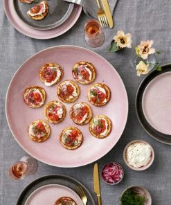 BITZ tallerkner fremstillet i mat gråt/blankt lyserødt stentøj. Dia. 27 cm. Gastro-tallerknernes blanke overflade stimulerer alle sanser med sit legende farvespil, og den større spiseflade giver plads til endnu mere kreativitet i anretningen.