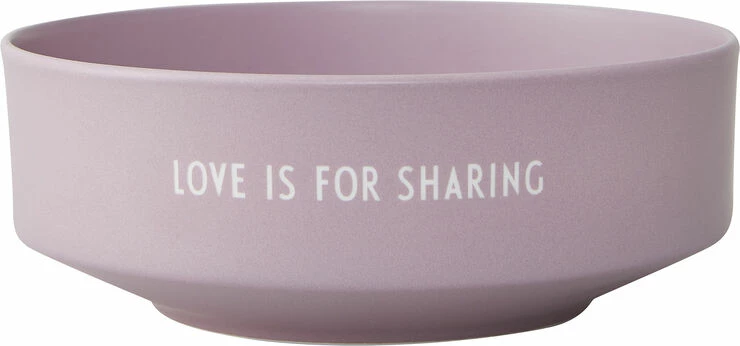 Dekorativ skål til servering og til pynt. Designet i den fineste, ultramatte porcelænskvalitet med indgraverede bogstaver. Et flot statement på bordet og perfekt som frugtskål, snackskål eller på middagsbordet. Spred budskabet Love is for sharing. God gaveidé til brudeparret.