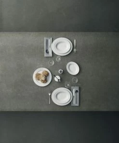 Hvor Legios formsprog er absolut minimalistisk, er Legio Nova designet med riller, der raffineret danner rammen om maden. Eva Trio er sponsor af det danske kokkelandshold, og i designprocessen er der fundet inspiration i at se deres madkunst, og den omhu de lægger i deres håndværk. Derfor indrammes tallerkenens midte af elegante riller der fremhæver anretningen. Legio Nova er ligesom Legio porcelæn af høj kvalitet, der både tåler ovn, mikroovn og fryser. Der er 10 års porcelænsgaranti på stellet, og så er det ikke mindst testet af det danske kokkelandshold, som anbefaler Legio Nova.