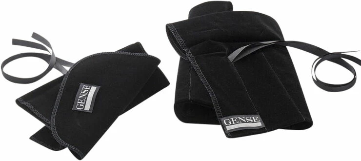 Bestikpose til 12 dele udført i sort kvalitetsklæde med hvidt Gense-logo og sort stofbånd til lukning.