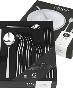 Fugas tidsløse design fra 1962, er med sine bløde afrundede linier velegnet til både hverdag og fest. Bestikker et karakteristisk og let genkendeligt, pga. gaflens forholdsvis korte tænder, og bliver ofte valgt da serien indeholder mange dele, som f.eks. kagegafler, dessertskeer og serveringsdele. Udført i rustfrit 18/8 stål som er matpoleret på skaftet og blankpoleret på den øvrige halvdel, hvilket givet et smukt spil mellem det blanke og matte. Gaveæsken indeholder: 4x Kaffeskeer, 4x Spiseskeer, 4x Bordgafler, 4x Bordknive. De mange dele i serien findes i Magasins boligafdeling.