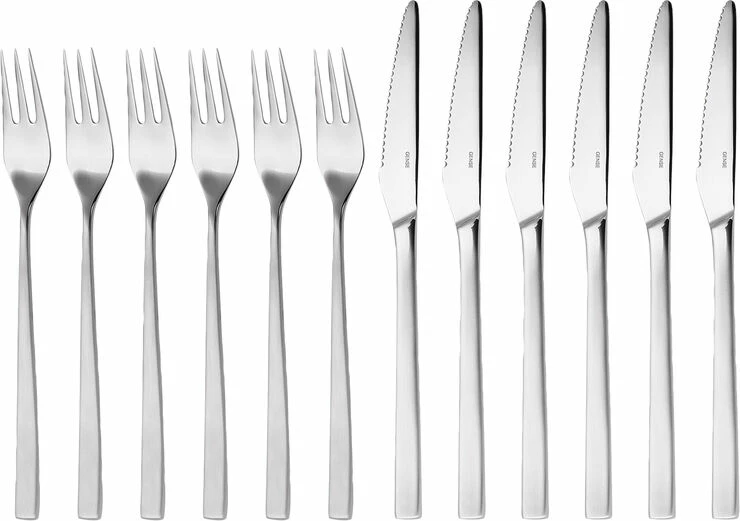 6 sæt kniv og gaffel. Genses bestik Fuga er ideelt til hverdagslivet såvel som til festlige lejligheder. Fuga har et klassisk design med blødt afrundede linjer, der hviler behageligt i hånden. Tias Eckhoff formgav det ikoniske bestik i 1962, der i sit design formidler klarhed og præcision, men med et subtilt udtryk.