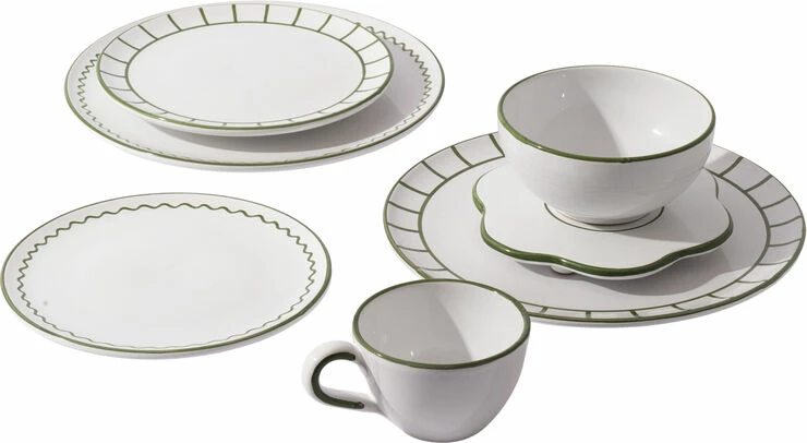 Tallerkenerne findes i to størrelser og kommer i to print i tre farver. Alle items kan mixes og matches på kryds af print og farver, bruges i sæt eller enkeltvis.