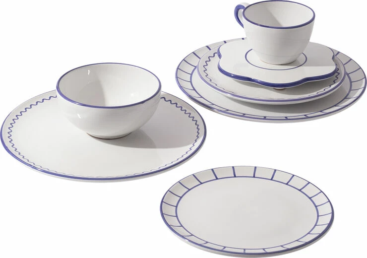 Tallerkenerne findes i to størrelser og kommer i to print i tre farver. Alle items kan mixes og matches på kryds af print og farver, bruges i sæt eller enkeltvis.