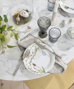 Påske går ofte hånd i hånd med de første forårsfornemmelser – og den stemning er på smukkeste vis indfanget i Hammershøi Easter. Den eventyrligt smukke påskekollektion er dekoreret med nyudsprungne grene og traditionsrige påskesymboler, der er håndmalet af Rikke Jacobsen og overført til porcelænet. Miks påske-stellet med Hammershøis klassiske hvide stel og skab et moderne påskebord med enkle virkemidler. Tåler maskinopvask. Hammershøi Easter-kollektionen indeholder også et krus, en bonbonniere og påskeophæng. Hammershøi Easter-tallerkenen har 2 års brudgaranti. » Læs om vores brudgaranti