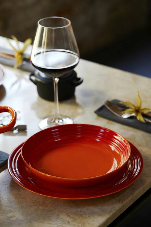 Med et klassisk design til ethvert måltid og enhver anledning bringer Le Creusets tallerkenserie Signature flotte farver og stil til middagsbordet. Middagstallerkenen har en perfekt størrelse til middagen til både hverdag og fest og bærer det ikoniske Le Creuset-design med de tre signaturringe, rene og elegante linjer samt en bred, praktisk kant. Stentøjstallerknerne tåler mikrobølgeovn, ovn, fryser og opvaskemaskine.