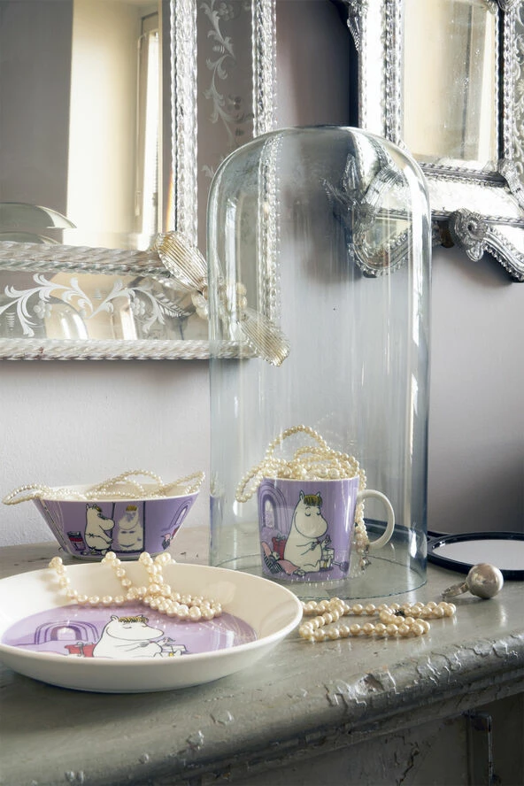 Snorkfrøken elsker at være midtpunkt. Snorkfrøken charmerer og elsker at blive charmeret. Hun er ikke kun feminin og forfængelig, men også modig og opfindsom. Denne gang har hun besluttet at prøve en bikini, men hendes spejlbillede er ikke flatterende. Snorkfrøken viser sine følelser ved at skifte farve. Mumikrusene er dekoreret i hånden. Krusene tåler ovn, mikroovn og fryser.