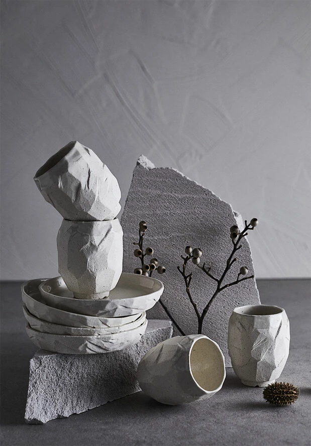 Kuri er skabt med naturlige organiske former, som har en rå kant fra den traditionelle håndværksmetode, kurinuki. Tallerkenerne har en glat glasering, som giver designet ekstra kant, en skinnede overflade og tilføjer en grafisk kontrast. Denne glasering er også med til at gøre overfladen mere velegnet til madvarer og kan klare opvask. Kontrast er også med at gøre den ru Kurinuki overflade fra leret silkeblød og velegnet til mad. Tåler opvaskemaskine. Desserttallerkenerne kommer i en pakke med 2 stk.