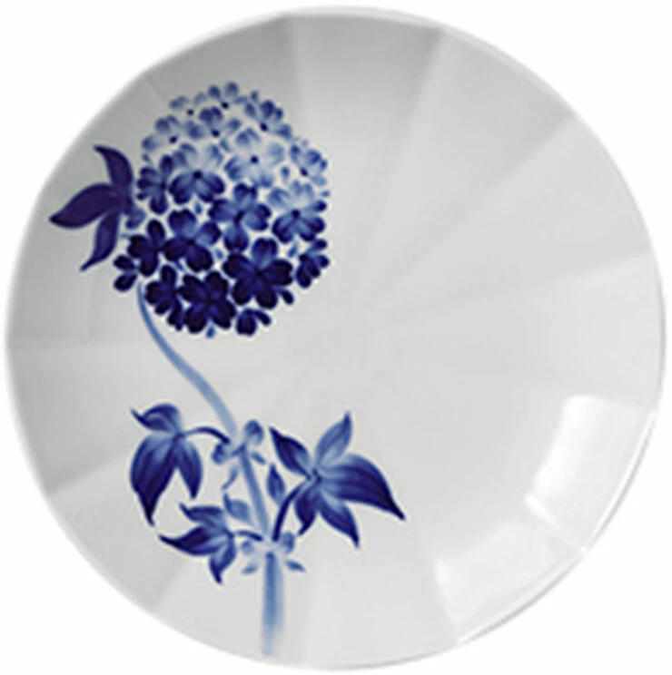 De bedste designs er ofte dem, der ikke ser anstrengte eller komplicerede ud, men derimod lette og tilgængelige. Med blomst-serien har designerne brudt med den mere traditionelle, centralt placerede buketdekoration fra Blå blomst. I stedet er alle elementer hver især prydet med deres egen individuelle, unikke blomst, for at opnå et mere moderne og underspillet udseende. Tallerkenens bløde coupé-form tillader det håndmalede blomstermotiv plads til at gro frit, og lader den klare blå, asymmetrisk-placerede blomst stå i kontrast til den hvide overflade. Uhindret af grænser og ydre kanter synes blomsterne næsten at vokse ind på tallerkenen og fremtræder dynamiske og livlige.