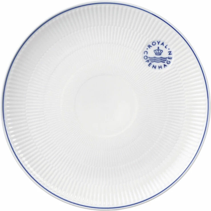 Tallerkenerne har alle en sirligt håndmalet blå linje og Royal Copenhagen stemplet. Blueline coupe tallerkener bliver lanceret i tre forskellige størrelser der passer til enhver middagsanledning. Formen og minimalismen på tallerkenerne gør det muligt at matche med andre stel fra Royal Copenhagen.