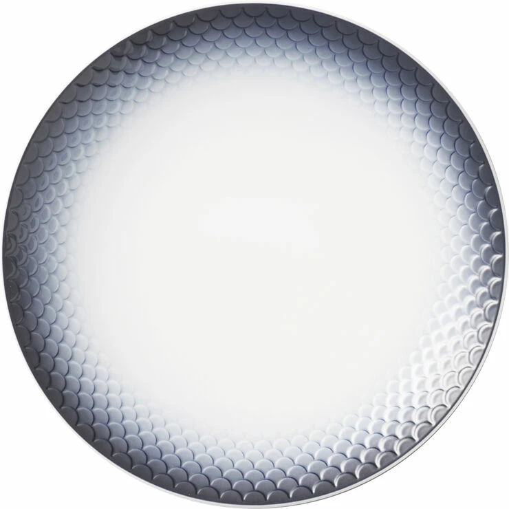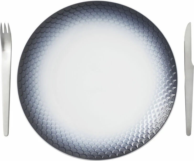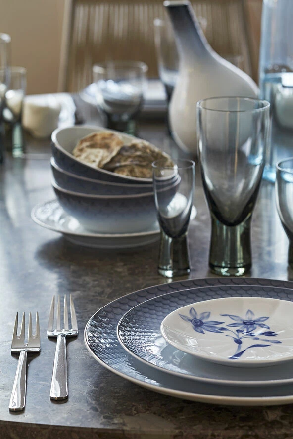 Kanten på HAV tallerkenen er omkranset af en sofistikeret dekoration, som er sprøjtemalet på i et drømmende spil af de grøngrå farver af havets dis. Farverne flyder over subtile fiskeskæl og indrammer på smukkeste vis den serverede mad og skaber en organisk, levende taktilitet til ethvert måltid. Den særlige dybde i kanten på hvert fiskeskæl understreger HAV middagstallerkenens funktionalitet og skønhed. HAV er et mindre men betydningsfuldt porcelænsstel der præsenterer nye funktionaliteter og former. HAV er smukt sprøjtemalet i hånden og udsmykket med detaljer i bronze. Stellet er nænsomt skræddersyet til at være multifunktionelt – et stel, der er tidløst i både design og funktionalitet. Skabt i 2019 af KiBiSi. • Håndlavet og håndsprøjtemalet • Unik gaveidé • Passer smukt sammen med de andre stel fra Royal Copenhagen