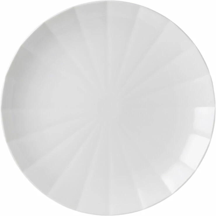 Tallerkenerne i Hvid Facet er designet i coupe-form uden fane, hvilket giver et smukt nutidigt design, der tillader at man lader sine kulinariske evner udfolde sig på hele tallerkenens overflade. Denne tallerken på 27 cm. egner sig perfekt som middagstallerken eller serveringsfad.
