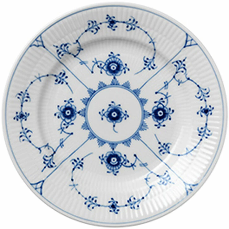 Musselmalet Riflet fascinerer med sin klassiske alsidighed. Den yndefulde dekoration fremhæver de delikate former og det fine håndværk, der ligger bag hver steldel. Musselmalet Riflet er et tidløst stel.