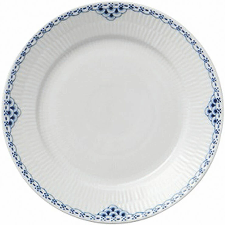 En klassiker fra det 19. århundrede, der er som skabt til vores tid. Kniplingeborten og de blå musseldekorationer på Prinsesse-stellet afslører dets tætte bånd til Royal Copenhagens musselmalede stel. Og det var faktisk også det, der i det 19. århundrede inspirerede Arnold Krog da han designede denne royale, klassiske serie af håndglaserede og håndmalede stel i en mesterlig, traditionel stil.