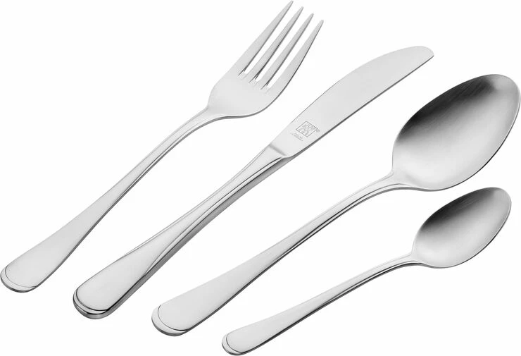 Dette bestik viser ZWILLING´s engagement i tidsløst design og fremragende håndværk. Bestikæskerne fås i flere forskellige størrelser. Til Jessica-bestikket kan desuden købes adskellige tilbehørsdele eksempelvis kagegaffel, kagespade, kagekniv, serveringsske, sauceske, steakkniv, suppeøse, frokostbestik, fiskebestik osv. Alt bestik fra ZWILLING er fremstillet af 18/10 rustfrit stål, og tåler at komme i opvaskemaskinen. Alle bestikknivene fra ZWILLING udmærker sig ved, at de er meget skarpe og forbliver skarpe længe. 16 dele bestående af 4 af hver af følgende: bordkniv, bordgaffel, spiseske og teske.